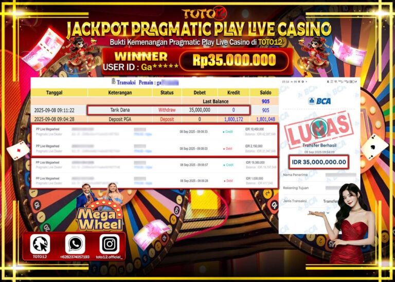 Selamat kepada Member Kami Ga****** Telah Jackpot dan berhasil mendapatkan kemenangan besar pada permainan JACKPOT PRAGMATIC PLAY LIVE CASINO (MEGA WHEEL) Dengan Kemenangan Sebesar Rp.35.000.000 –. Setelah mengisi Fomulir Withdraw dengan Kurang waktu 1-2 Menit Dana sudah kami Trasnfer kepada Pemilik Userid dan dana sudah dapat di cairkan oleh pemenang. Bukti Pembayaran yang TOTO12 berikan merupakan…