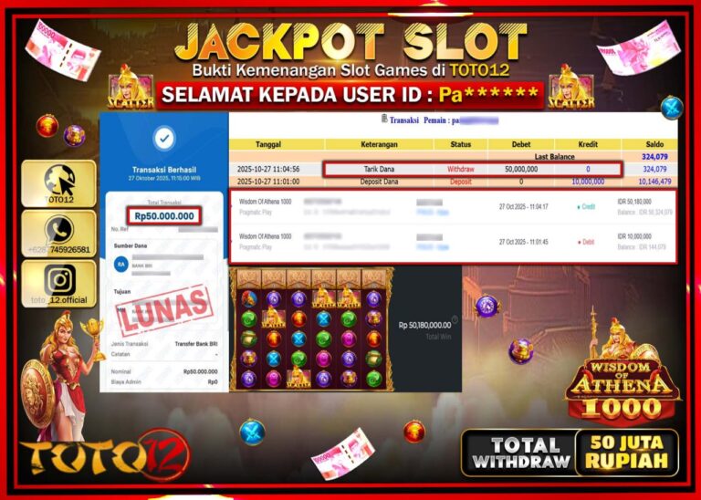 Selamat kepada Member Kami Pa****** Telah Jackpot dan berhasil mendapatkan kemenangan besar pada permainan JACKPOT SLOT GAME (WISDOM OF ATHENA 1000) Dengan Kemenangan Sebesar Rp.50.000.000 –. Setelah mengisi Fomulir Withdraw dengan Kurang waktu 1-2 Menit Dana sudah kami Trasnfer kepada Pemilik Userid dan dana sudah dapat di cairkan oleh pemenang. Bukti Pembayaran yang TOTO12 berikan merupakan…