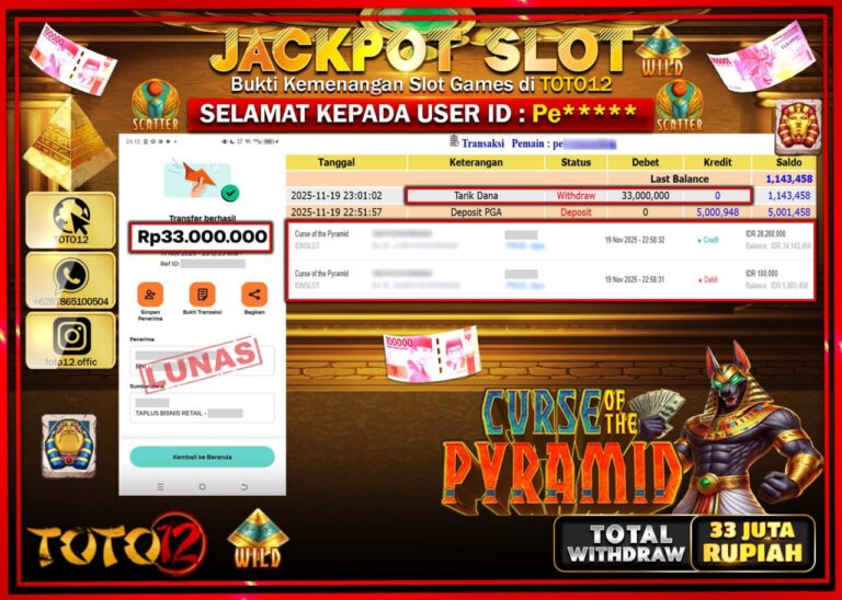 Selamat kepada Member Kami Pe****** Telah Jackpot dan berhasil mendapatkan kemenangan besar pada permainan JACKPOT SLOT GAME (CURSE OF THE PYRAMID) Dengan Kemenangan Sebesar Rp.33.000.000 –. Setelah mengisi Fomulir Withdraw dengan Kurang waktu 1-2 Menit Dana sudah kami Trasnfer kepada Pemilik Userid dan dana sudah dapat di cairkan oleh pemenang. Bukti Pembayaran yang TOTO12 berikan merupakan…