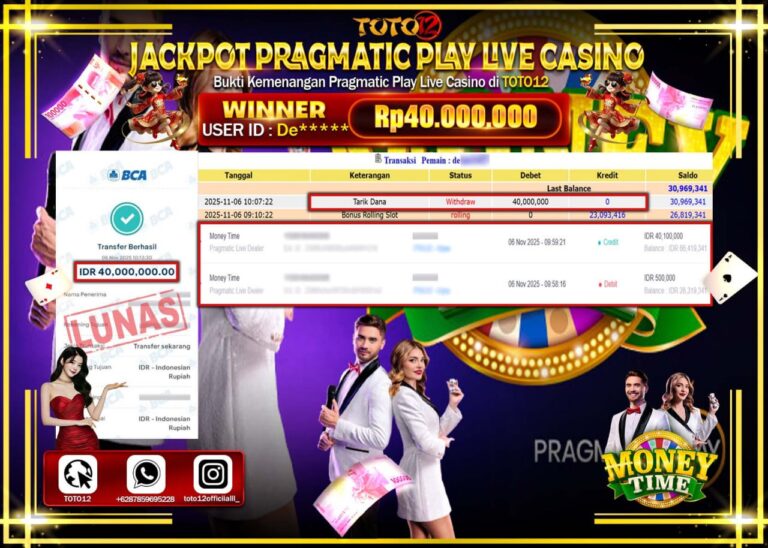 HANYA DI TOTO12 JP PASTI DI BAYAR LUNAS DAN CEPAT!!!!!! JACKPOT PRAGMATIC PLAY LIVE CASINO (MONEY TIME) Rp.40.000.000 !!!!