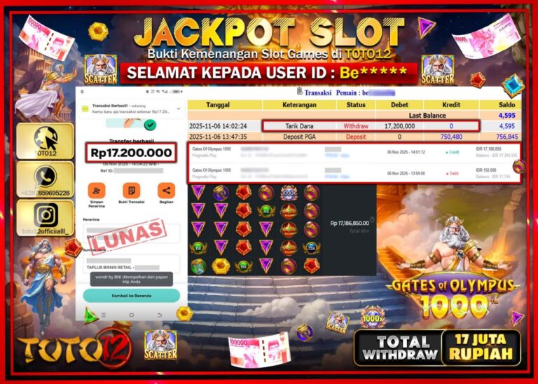 Selamat kepada Member Kami Be****** Telah Jackpot dan berhasil mendapatkan kemenangan besar pada permainan JACKPOT SLOT GAME (GATES OF OLYMPUS 1000) Dengan Kemenangan Sebesar Rp.17.200.000 –. Setelah mengisi Fomulir Withdraw dengan Kurang waktu 1-2 Menit Dana sudah kami Trasnfer kepada Pemilik Userid dan dana sudah dapat di cairkan oleh pemenang. Bukti Pembayaran yang TOTO12 berikan merupakan…