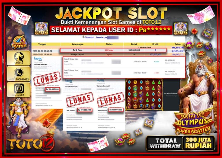 Selamat kepada Member Kami Pa**** Telah Jackpot dan berhasil mendapatkan kemenangan besar pada permainan JACKPOT SLOT GAME (GATES OF OLYMPUS SUPER SCATTER) Dengan Kemenangan Sebesar Rp.300.000.000–. Setelah mengisi Fomulir Withdraw dengan Kurang waktu 1-2 Menit Dana sudah kami Trasnfer kepada Pemilik Userid dan dana sudah dapat di cairkan oleh pemenang. Bukti Pembayaran yang TOTO12 berikan merupakan…