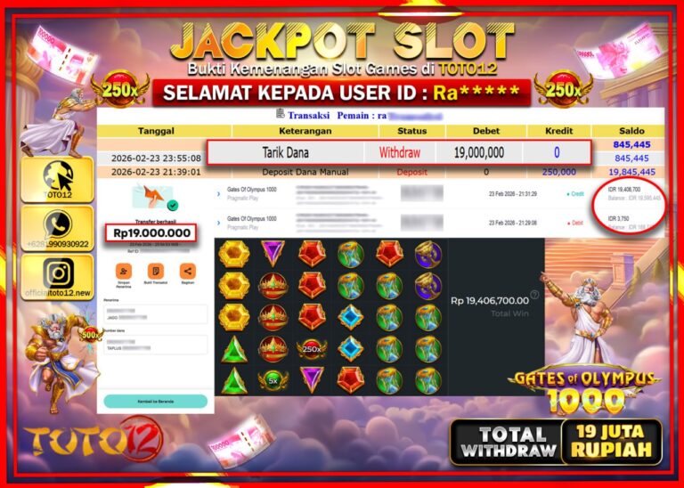 Selamat kepada Member Kami Ra***** Telah Jackpot dan berhasil mendapatkan kemenangan besar pada permainan JACKPOT SLOT GAME (GATES OF OLYMPUS 1000) Dengan Kemenangan Sebesar Rp.19.000.000–. Setelah mengisi Fomulir Withdraw dengan Kurang waktu 1-2 Menit Dana sudah kami Trasnfer kepada Pemilik Userid dan dana sudah dapat di cairkan oleh pemenang. Bukti Pembayaran yang TOTO12 berikan merupakan Bukti…