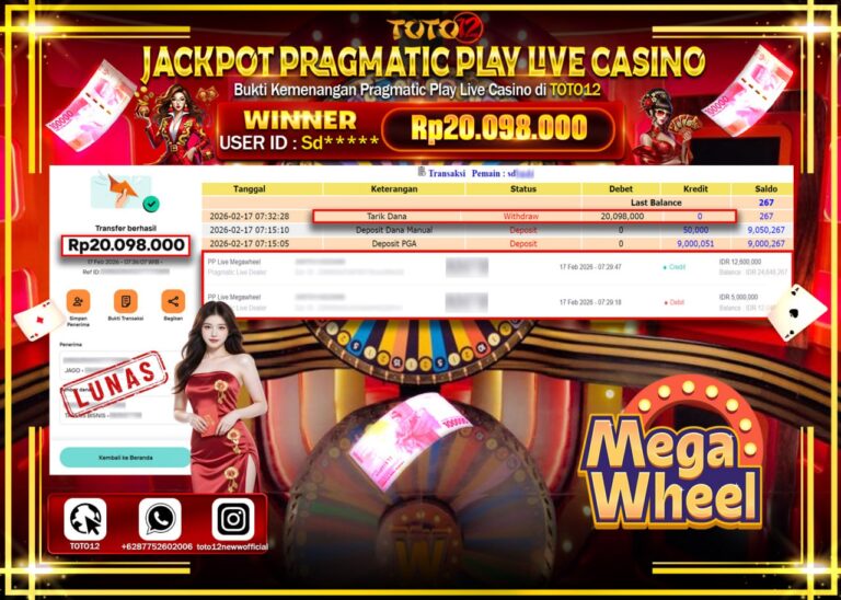 Selamat kepada Member Kami Sd****** Telah Jackpot dan berhasil mendapatkan kemenangan besar pada permainan JACKPOT PRAGMATICK PLAY LIVE GAME CASINO (MEGA WHEEL) Dengan Kemenangan Sebesar Rp.20.098.000–. Setelah mengisi Fomulir Withdraw dengan Kurang waktu 1-2 Menit Dana sudah kami Trasnfer kepada Pemilik Userid dan dana sudah dapat di cairkan oleh pemenang. Bukti Pembayaran yang TOTO12 berikan merupakan…