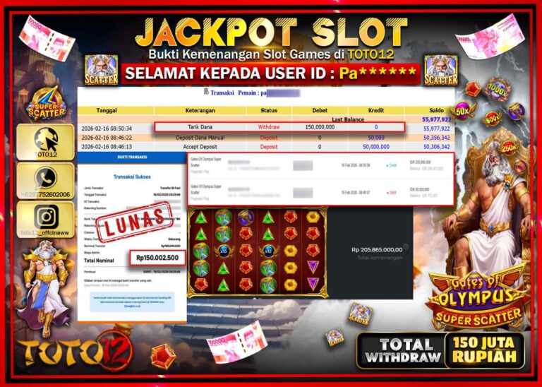 Selamat kepada Member Kami Pa******* Telah Jackpot dan berhasil mendapatkan kemenangan besar pada permainan JACKPOT SLOT GAME (GATES OF OLYMPUS SUPER SCATTER) Dengan Kemenangan Sebesar Rp.150.000.000–. Setelah mengisi Fomulir Withdraw dengan Kurang waktu 1-2 Menit Dana sudah kami Trasnfer kepada Pemilik Userid dan dana sudah dapat di cairkan oleh pemenang. Bukti Pembayaran yang TOTO12 berikan merupakan…