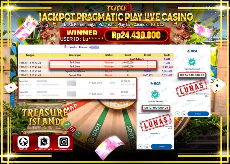 Selamat kepada Member Kami Lu****** Telah Jackpot dan berhasil mendapatkan kemenangan besar pada permainan JACKPOT PRAGMATICK PLAY LIVE GAME CASINO (TREASURE ISLAND) Dengan Kemenangan Sebesar Rp.24.430.000–. Setelah mengisi Fomulir Withdraw dengan Kurang waktu 1-2 Menit Dana sudah kami Trasnfer kepada Pemilik Userid dan dana sudah dapat di cairkan oleh pemenang. Bukti Pembayaran yang TOTO12 berikan merupakan…