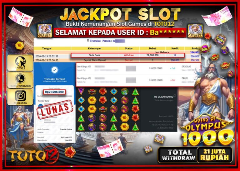 Selamat kepada Member Kami Ba****** Telah Jackpot dan berhasil mendapatkan kemenangan besar pada permainan JACKPOT SLOT GAME (GATES OF OLYMPUS 1000) Dengan Kemenangan Sebesar Rp.21.000.000–. Setelah mengisi Fomulir Withdraw dengan Kurang waktu 1-2 Menit Dana sudah kami Trasnfer kepada Pemilik Userid dan dana sudah dapat di cairkan oleh pemenang. Bukti Pembayaran yang TOTO12 berikan merupakan Bukti…