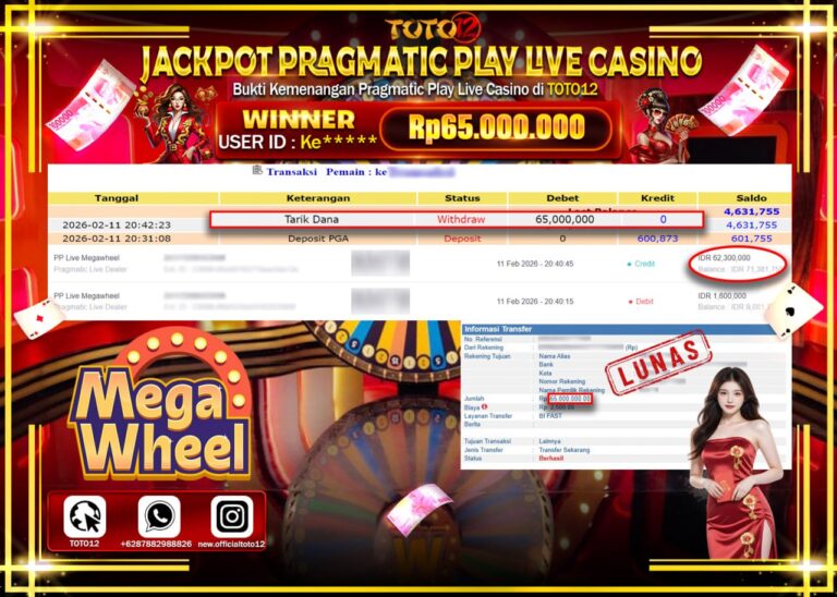 Selamat kepada Member Kami Ke***** Telah Jackpot dan berhasil mendapatkan kemenangan besar pada permainan JACKPOT PRAGMATIC PLAY LIVE CASINO (PP LIVE MEGAWHEEL) Dengan Kemenangan Sebesar Rp.65.000.000–. Setelah mengisi Fomulir Withdraw dengan Kurang waktu 1-2 Menit Dana sudah kami Trasnfer kepada Pemilik Userid dan dana sudah dapat di cairkan oleh pemenang. Bukti Pembayaran yang TOTO12 berikan merupakan…