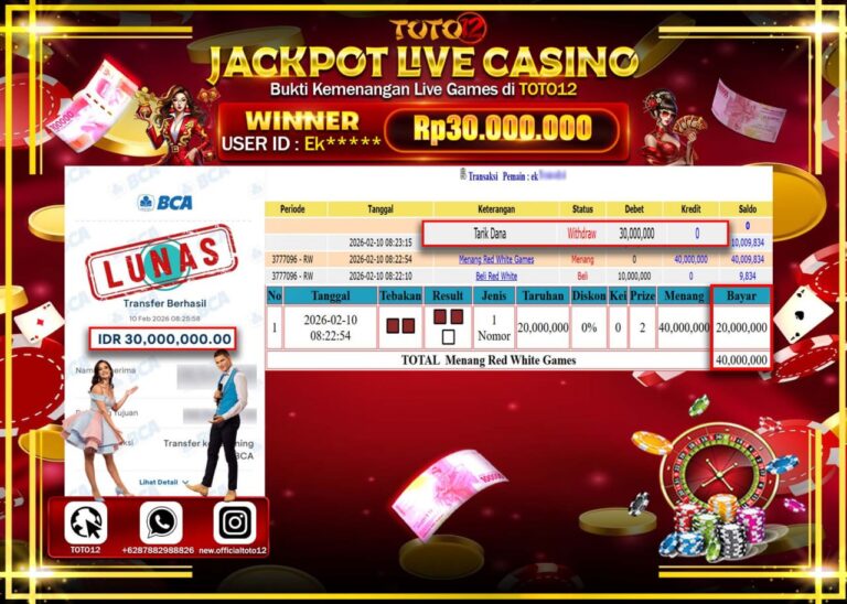 HANYA DI TOTO12 JP PASTI DI BAYAR LUNAS DAN CEPAT!!!!!! JACKPOT LIVE CASINO (RED WHITE) Rp.30.000.000!!!!