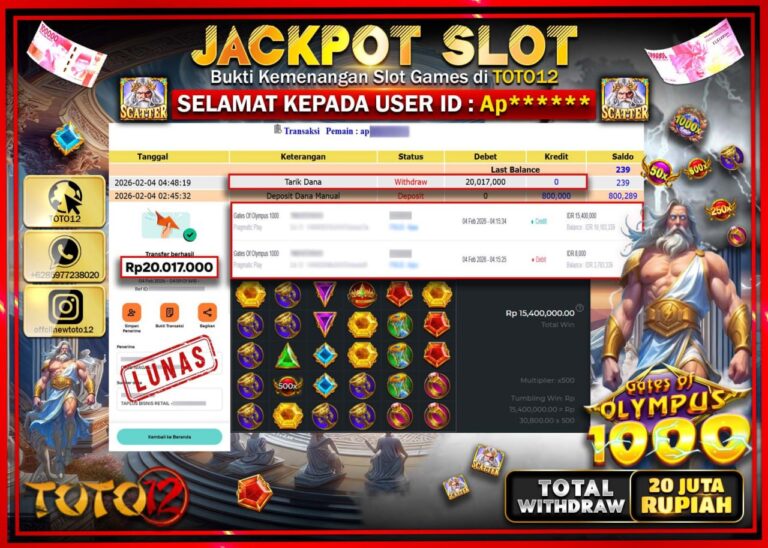 Selamat kepada Member Kami Ap****** Telah Jackpot dan berhasil mendapatkan kemenangan besar pada permainan JACKPOT SLOT GAME (GATES OF OLYMPUS 1000) Dengan Kemenangan Sebesar Rp.20.017.000 –. Setelah mengisi Fomulir Withdraw dengan Kurang waktu 1-2 Menit Dana sudah kami Trasnfer kepada Pemilik Userid dan dana sudah dapat di cairkan oleh pemenang. Bukti Pembayaran yang TOTO12 berikan merupakan…