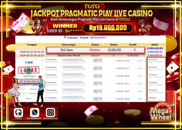 Selamat kepada Member Kami Bo**** Telah Jackpot dan berhasil mendapatkan kemenangan besar pada permainan JACKPOT PRAGMATICK PLAY LIVE GAME CASINO (MEGA WHEEL) Dengan Kemenangan Sebesar Rp.19.000.000–. Setelah mengisi Fomulir Withdraw dengan Kurang waktu 1-2 Menit Dana sudah kami Trasnfer kepada Pemilik Userid dan dana sudah dapat di cairkan oleh pemenang. Bukti Pembayaran yang TOTO12 berikan merupakan…