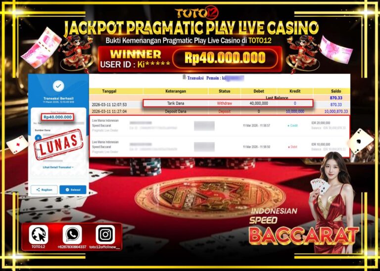 HANYA DI TOTO12 JP PASTI DI BAYAR LUNAS DAN CEPAT!!!!!! JACKPOT PRAGMATIC PLAY LIVE GAME CASINO (LIVE MANIA INDONSIA SPEED BACCARAT) Rp.40.000.000!!!!