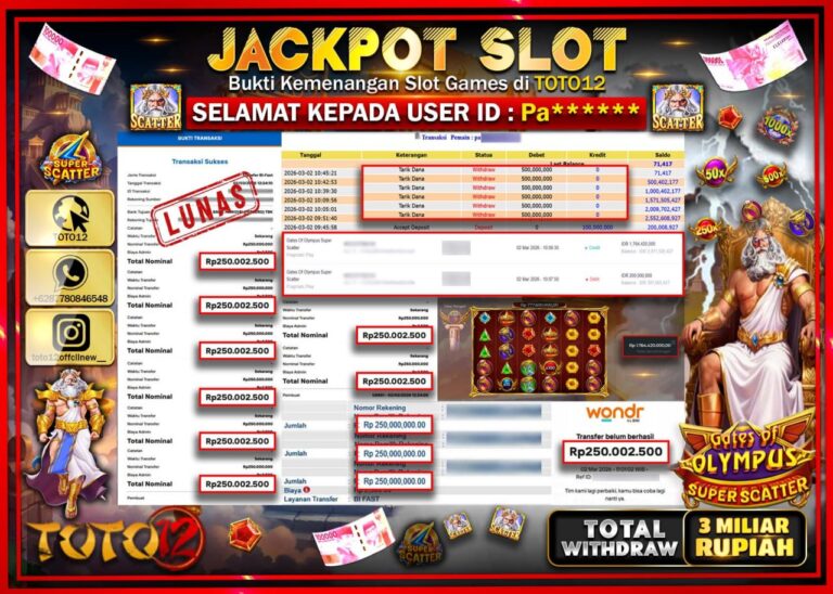 Selamat kepada Member Kami Pa**** Telah Jackpot dan berhasil mendapatkan kemenangan besar pada permainan JACKPOT SLOT GAME (GATES OF OLYMPUS SUPER SCATTER) Dengan Kemenangan Sebesar Rp.300.000.000.000–. Setelah mengisi Fomulir Withdraw dengan Kurang waktu 1-2 Menit Dana sudah kami Trasnfer kepada Pemilik Userid dan dana sudah dapat di cairkan oleh pemenang. Bukti Pembayaran yang TOTO12 berikan merupakan…