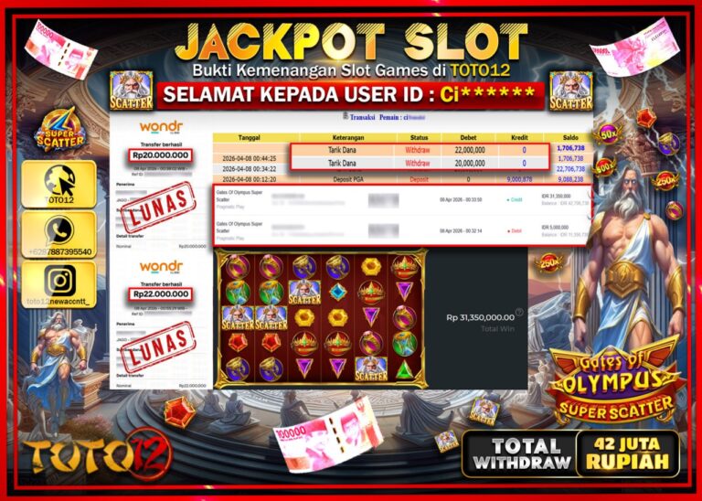 Selamat kepada Member Kami Ci***** Telah Jackpot dan berhasil mendapatkan kemenangan besar pada permainan JACKPOT SLOT GAME (GATES OF OLYMPUS SUPER SCATTER) Dengan Kemenangan Sebesar Rp.42.000.000–. Setelah mengisi Fomulir Withdraw dengan Kurang waktu 1-2 Menit Dana sudah kami Trasnfer kepada Pemilik Userid dan dana sudah dapat di cairkan oleh pemenang. Bukti Pembayaran yang TOTO12 berikan merupakan…