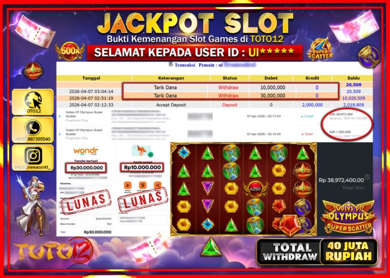 Selamat kepada Member Kami Ul***** Telah Jackpot dan berhasil mendapatkan kemenangan besar pada permainan JACKPOT SLOT GAME (GATES OF OLYMPUS SUPER SCATTER) Dengan Kemenangan Sebesar Rp.40.000.000–. Setelah mengisi Fomulir Withdraw dengan Kurang waktu 1-2 Menit Dana sudah kami Trasnfer kepada Pemilik Userid dan dana sudah dapat di cairkan oleh pemenang. Bukti Pembayaran yang TOTO12 berikan merupakan…