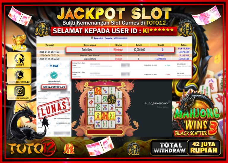 Selamat kepada Member Kami KI***** Telah Jackpot dan berhasil mendapatkan kemenangan besar pada permainan JACKPOT SLOT GAME (MAHJONG WINS 3 BLACK SCATTER) Dengan Kemenangan Sebesar Rp.42.000.000–. Setelah mengisi Fomulir Withdraw dengan Kurang waktu 1-2 Menit Dana sudah kami Trasnfer kepada Pemilik Userid dan dana sudah dapat di cairkan oleh pemenang. Bukti Pembayaran yang TOTO12 berikan merupakan…