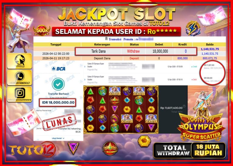 Selamat kepada Member Kami Ro***** Telah Jackpot dan berhasil mendapatkan kemenangan besar pada permainan JACKPOT SLOT GAME (GATES OF OLYMPUS SUPER SCATTER) Dengan Kemenangan Sebesar Rp.18.000.000–. Setelah mengisi Fomulir Withdraw dengan Kurang waktu 1-2 Menit Dana sudah kami Trasnfer kepada Pemilik Userid dan dana sudah dapat di cairkan oleh pemenang. Bukti Pembayaran yang TOTO12 berikan merupakan…