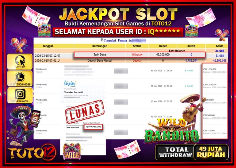 Selamat kepada Member Kami La****** Telah Jackpot dan berhasil mendapatkan kemenangan besar pada permainan JACKPOT SLOT GAME (SWEET BONANZA 1000) Dengan Kemenangan Sebesar Rp.80.000.000. Setelah mengisi Fomulir Withdraw dengan Kurang waktu 1-2 Menit Dana sudah kami Trasnfer kepada Pemilik Userid dan dana sudah dapat di cairkan oleh pemenang. Bukti Pembayaran yang TOTO12 berikan merupakan Bukti Pembayaran…