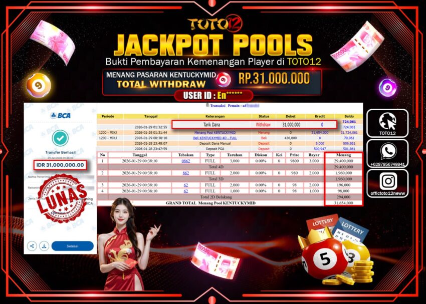 Setelah mengisi Fomulir Withdraw dengan Kurang waktu 1-2 Menit Dana sudah kami Trasnfer kepada Pemilik Userid dan dana sudah dapat di cairkan oleh pemenang. Bukti Pembayaran yang TOTO12 berikan merupakan Bukti Pembayaran yang SAH / VALID yang langsung Di dapatkan melalui transaksi dari Bank yang di Tuju.