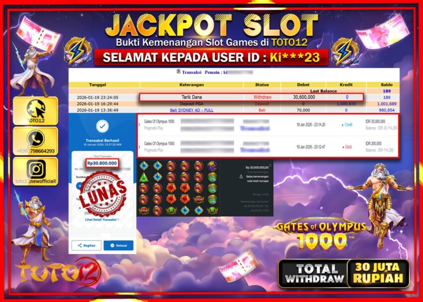 Selamat kepada Member Kami Ki****** Telah Jackpot dan berhasil mendapatkan kemenangan besar pada permainan JACKPOT SLOT GAME (GATES OF OLYMPUS 1000) Dengan Kemenangan Sebesar Rp.30.600.000 –.