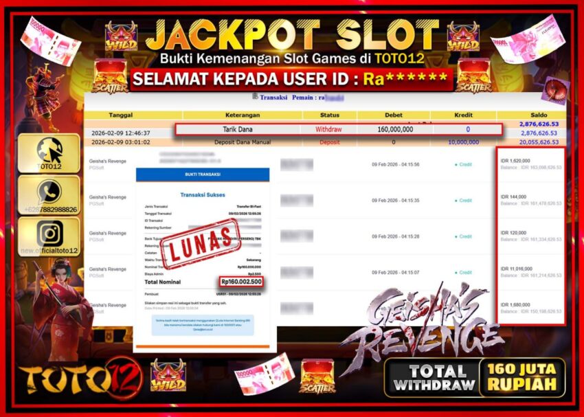 HANYA DI TOTO12 JP PASTI DI BAYAR LUNAS DAN CEPAT!!!!!! JACKPOT SLOT GAME (GEISHAS REVENGE) Rp.160.000.000!!!!