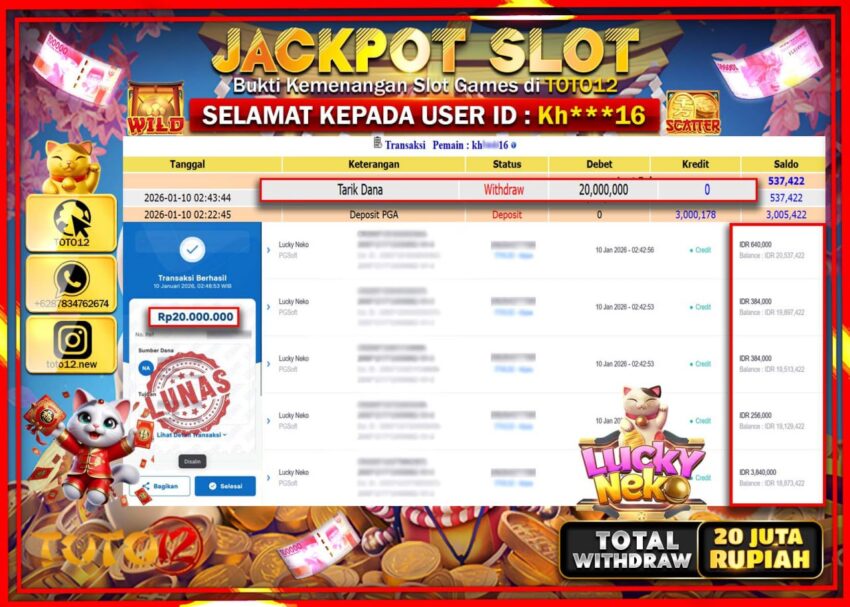 HANYA DI TOTO12 JP PASTI DI BAYAR LUNAS DAN CEPAT!!!!!! JACKPOT SLOT GAME (LUCKY NEKO) Rp.20.000.000 !!!!