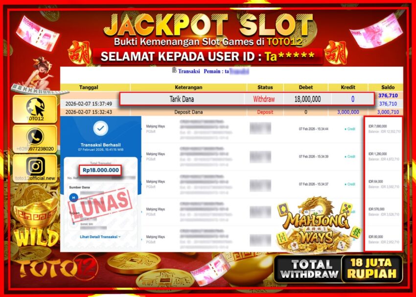 HANYA DI TOTO12 JP PASTI DI BAYAR LUNAS DAN CEPAT!!!!!! JACKPOT SLOT GAME (MAHJONG WAYS) Rp.18.000.000!!!!