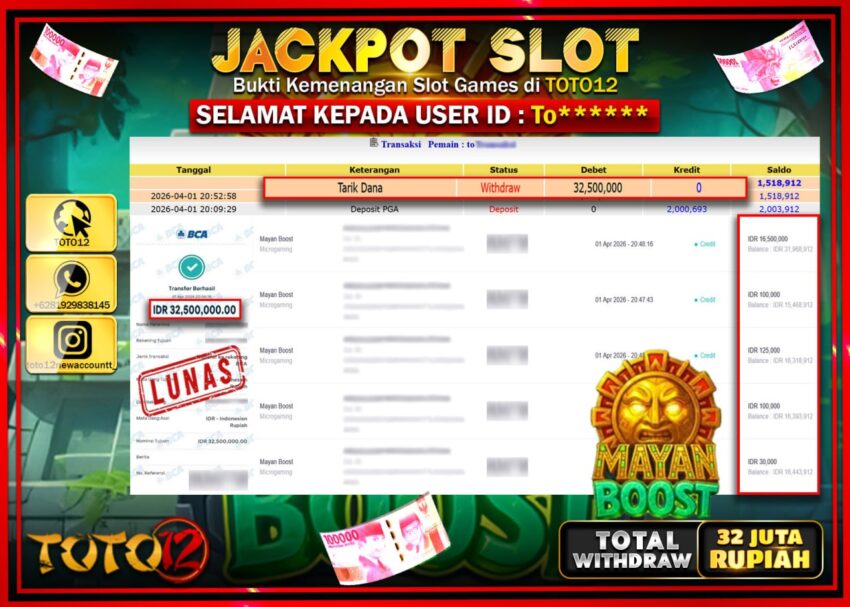 HANYA DI TOTO12 JP PASTI DI BAYAR LUNAS DAN CEPAT!!!!!! JACKPOT SLOT GAME (MAYAN BOOST) Rp.32.500.000!!!!