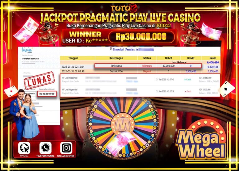 Selamat kepada Member Kami Ke****** Telah Jackpot dan berhasil mendapatkan kemenangan besar pada permainan JACKPOT PRAGMATIC PLAY LIVE CASINO (MEGA WHEEL) Dengan Kemenangan Sebesar Rp.30.000.000 –. Setelah mengisi Fomulir Withdraw dengan Kurang waktu 1-2 Menit Dana sudah kami Trasnfer kepada Pemilik Userid dan dana sudah dapat di cairkan oleh pemenang. Bukti Pembayaran yang TOTO12 berikan merupakan…