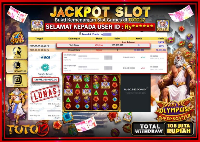 Selamat kepada Member Kami Ry**** Telah Jackpot dan berhasil mendapatkan kemenangan besar pada permainan JACKPOT SLOT GAME (GATES OF OLYMPUS SUPER SCATTER) Dengan Kemenangan Sebesar Rp.108.360.000–. Setelah mengisi Fomulir Withdraw dengan Kurang waktu 1-2 Menit Dana sudah kami Trasnfer kepada Pemilik Userid dan dana sudah dapat di cairkan oleh pemenang. Bukti Pembayaran yang TOTO12 berikan merupakan…