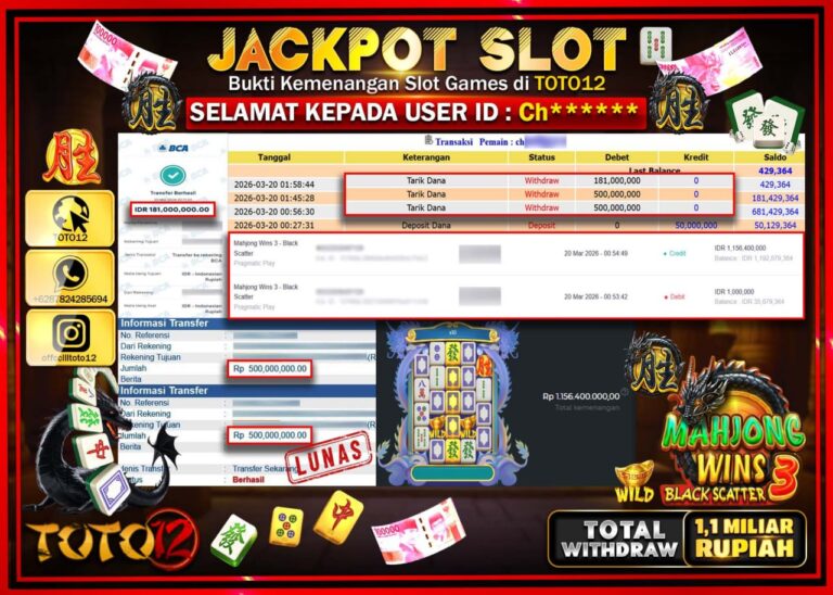 Selamat kepada Member Kami Ur**** Telah Jackpot dan berhasil mendapatkan kemenangan besar pada permainan JACKPOT SLOT GAME (MAHJONG WAYS 2) Dengan Kemenangan Sebesar Rp.20.000.000–. Setelah mengisi Fomulir Withdraw dengan Kurang waktu 1-2 Menit Dana sudah kami Trasnfer kepada Pemilik Userid dan dana sudah dapat di cairkan oleh pemenang. Bukti Pembayaran yang TOTO12 berikan merupakan Bukti Pembayaran…