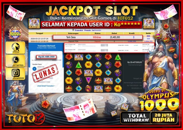 Selamat kepada Member Kami Ko**** Telah Jackpot dan berhasil mendapatkan kemenangan besar pada permainan JACKPOT SLOT GAME (GATES OF OLYMPUS 1000) Dengan Kemenangan Sebesar Rp.20.485.000–. Setelah mengisi Fomulir Withdraw dengan Kurang waktu 1-2 Menit Dana sudah kami Trasnfer kepada Pemilik Userid dan dana sudah dapat di cairkan oleh pemenang. Bukti Pembayaran yang TOTO12 berikan merupakan Bukti…